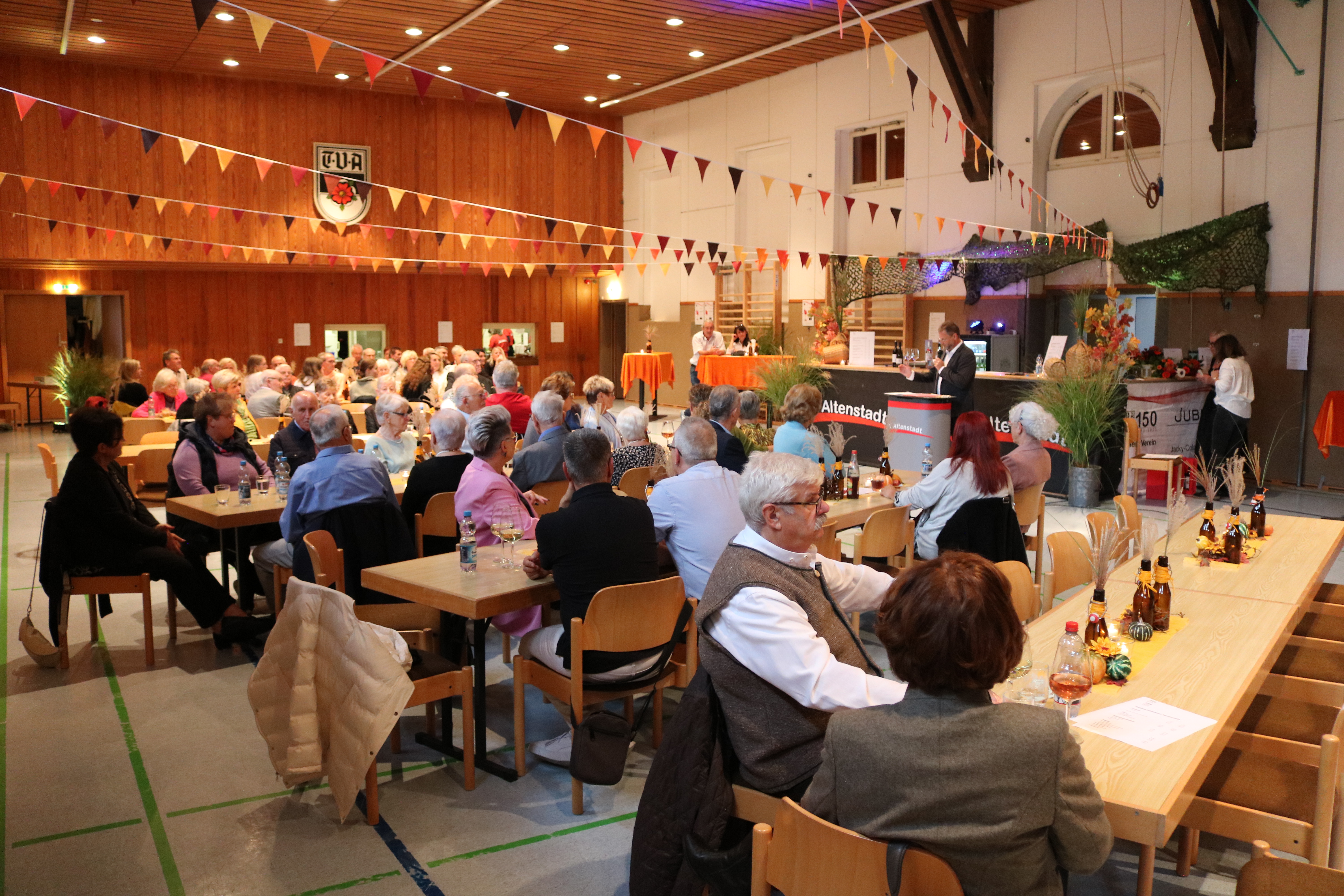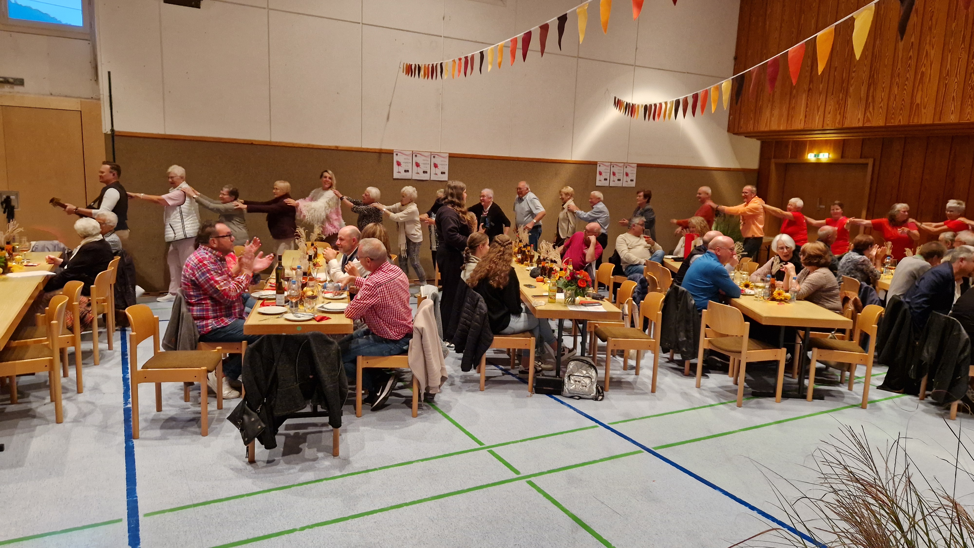 Es wurde noch lange geredet und gelacht, geschunkelt und getanzt, Polonaisen bewegten sich durch die von Claudi Maier herbstlich-bunt geschmückte Halle.
